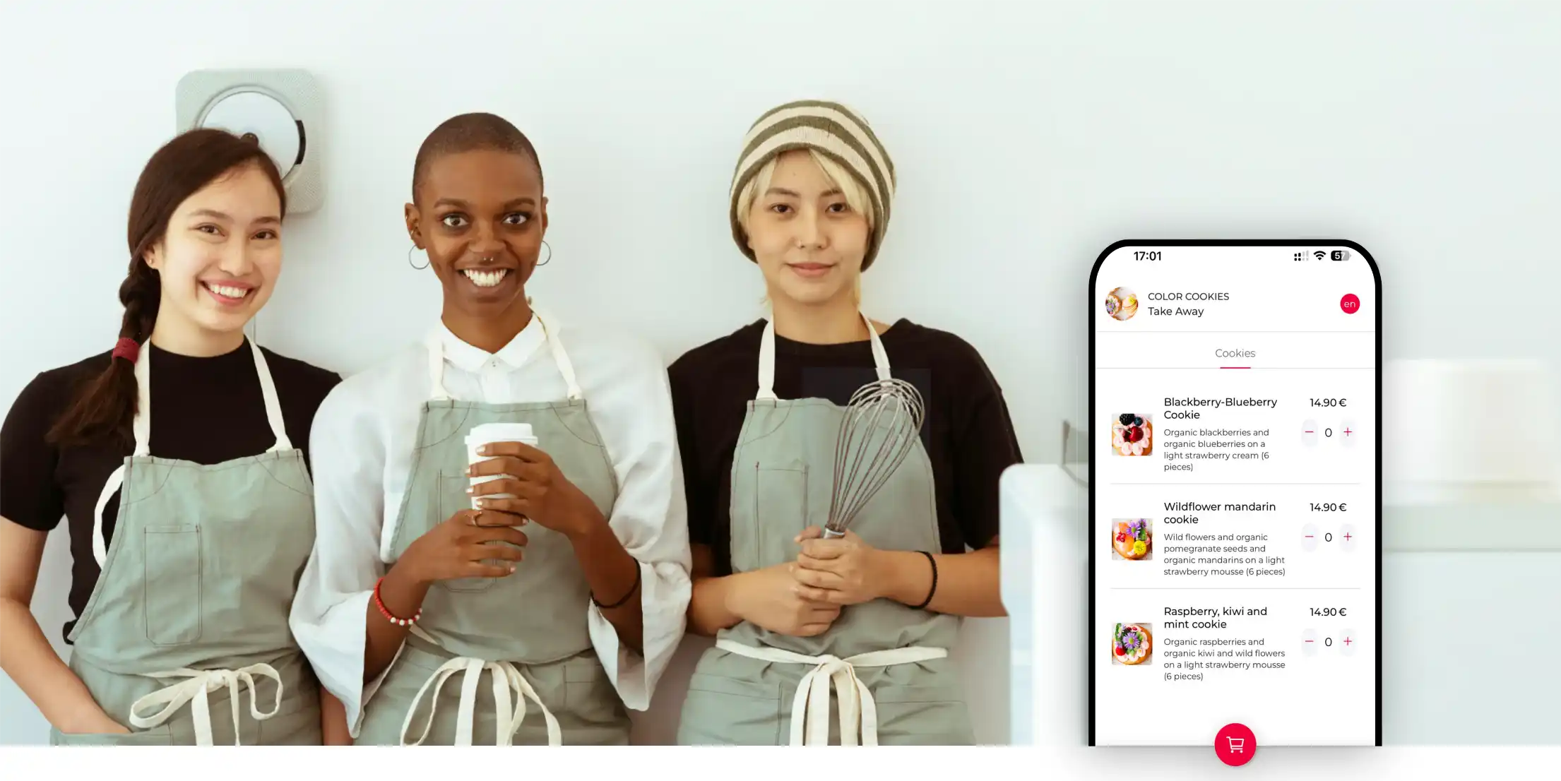 This practical solution enables small and medium-sized businesses to offer ordering, online payments and administration in a single system easily on a mobile phone – without the need of additional devices, without an app, online and onsite.