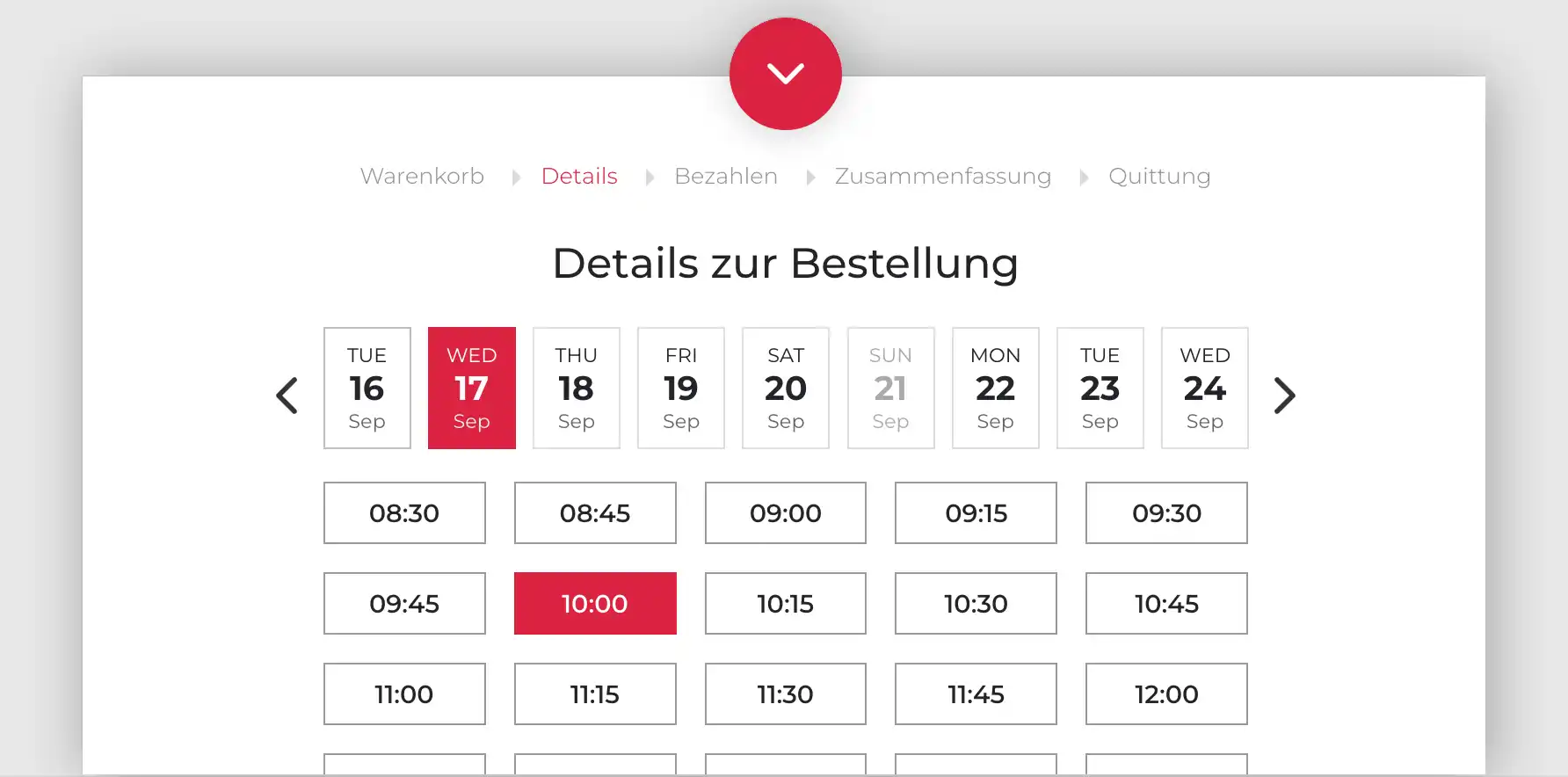 The first available collection time is calculated automatically based on the production time required for the order. This provides customers with realistic time estimates, allowing them to plan their collection accordingly. The option to select a time slot reduces waiting times, significantly improves customer satisfaction and makes selection easy on a mobile phone.